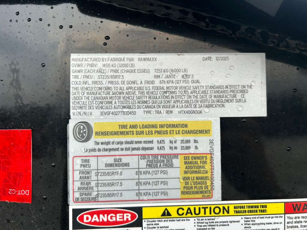 2026 RWMX 40×102 Deck over 2-5/16” Ball 30,000 lbs. Square Coupler12″ Engineered I-Beam Frame Cross-Members: 3″ Channel / 12″ OC6″ Channel Outer Deck Frame Rub Rail: 2″ x 3/8″ Flat Bar3-7/8″ x 1-13/16″ (ID) Stake Pockets Chain Spool: 1 5/8″ ODDual 12,000 Lbs. Hydraulic Jacks11′ Hydraulic Lift Tail (10,000 lbs Lift Capacity)Dual Cylinder Hyd. lift Self-locking Hyd. Tail. Flooring: 2” Treated Lumber Deck4 D-Rings Front Tool Box: Between Risers Grade 50, One-Piece Gooseneck Winch Plate Chain Rack8 – 18 Ply ST235/75R17.5 Tires and Spare HDSS Spring Suspension2 – 16,000 lbs Axles With Ele./Hyd.3/8″ G70 Safety Chains40′ – Slide Track For Ratchets 3M DOT Compliant Reflective Tape All Weather Wiring Harness Powder Coat Paint