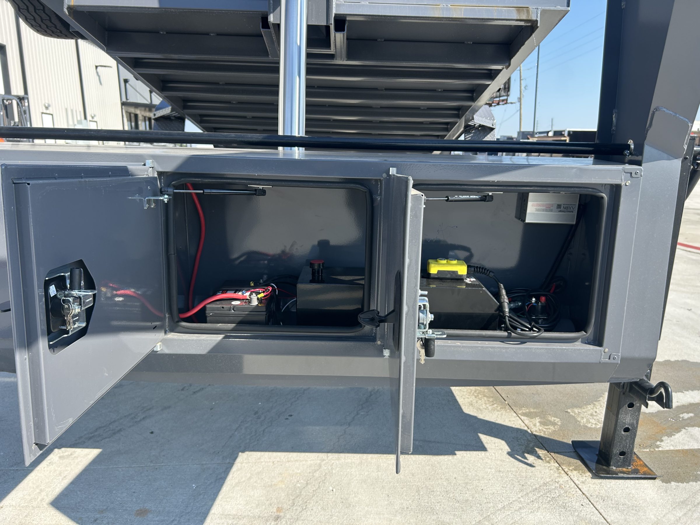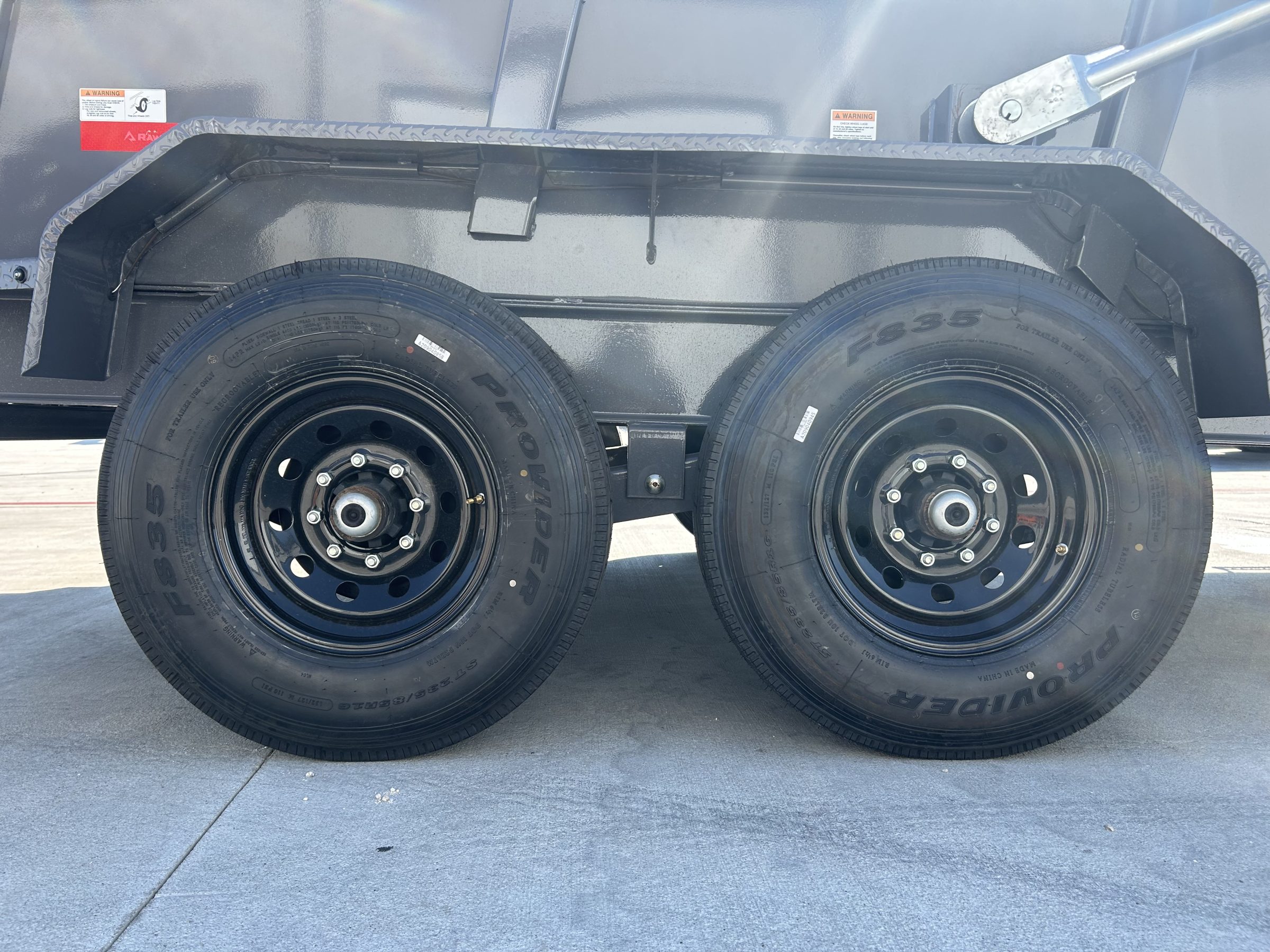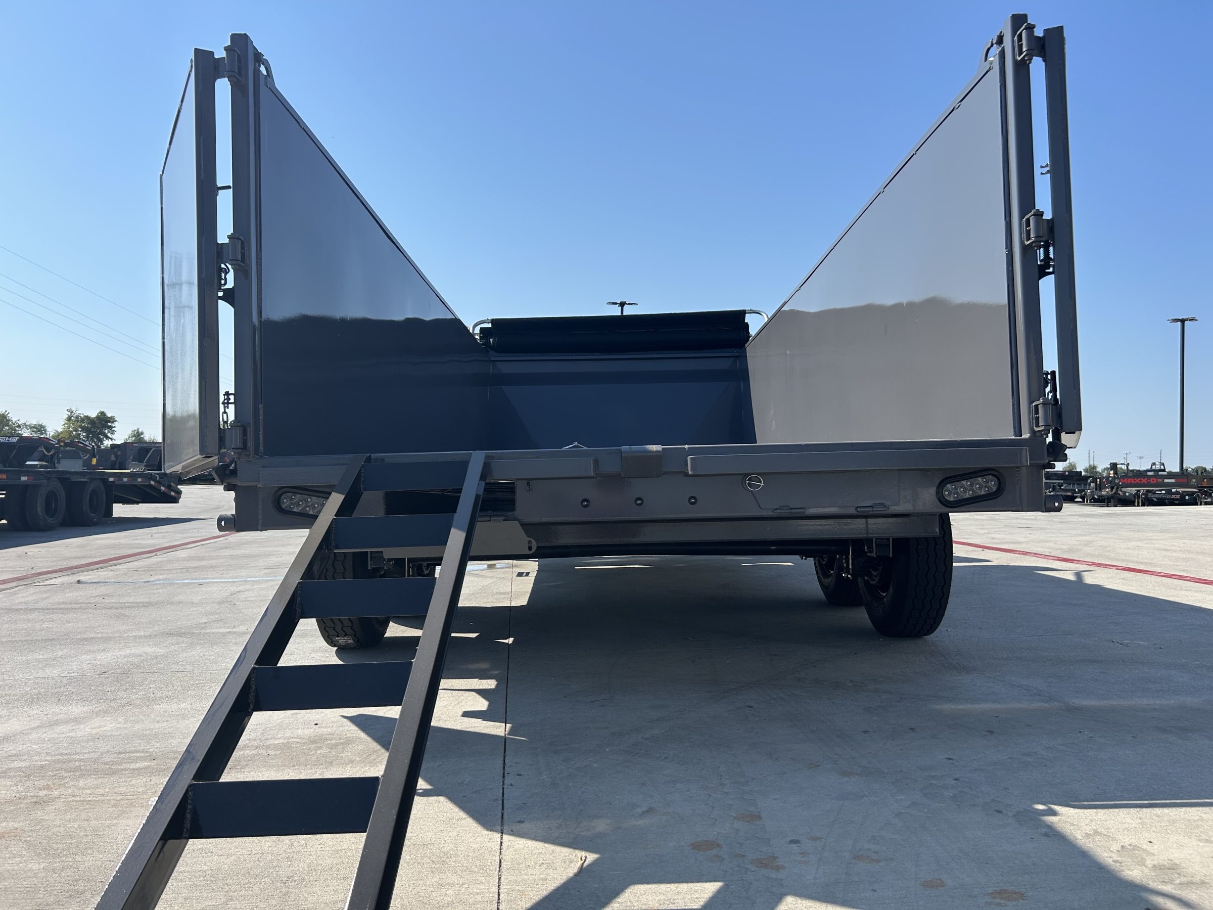 2026 RWMX 16×83 GN Dump 2-5/16” Ball 25,000 lbs Square Coupler 8″ x 13 lbs I Beam Frame 3″ Channel / 16″ OC 2 Side Wind Drop Leg Jacks – 10,000 lbs Inside Width: 83″ – Side Height: 44″ 10G Formed Walls – Grade 50 8G Steel Floor 12G Thread Plate Steel Fenders 3-7/8″ x 1-13/16″ (ID) Stake Pockets 4 D-Rings (Welded Inside Corners) 3 Way Doors 6′ Slide-In Channel Ramps Front Tool Box: Between Risers Grade 50, One-Piece Gooseneck Hydraulic – Power Up – Down 144″ Cylinder on 16′ Manual Flip over Tarp 5 – 14 Ply ST235/80R16 Tires Spring Suspension 2 – 7,000 lbs Axles With Brakes 3/8″ G70 Safety Chains 3M DOT Compliant Reflective Tape All Weather Wiring Harness Powder Coat Paint